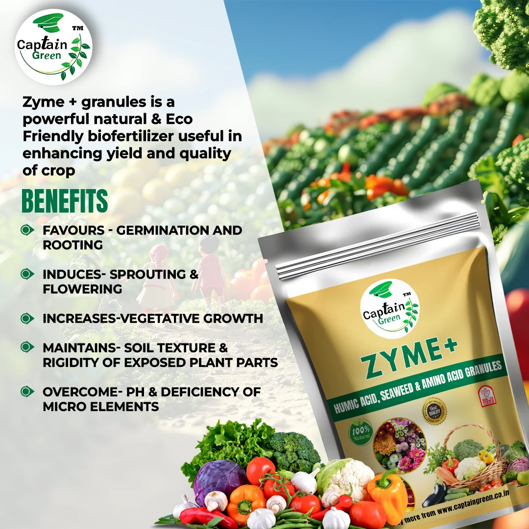 : Zyme + granules is a powerful natural and exclusive eco - friendly research based bio fertilizer developed that are useful in enhancing yield and quality of crop.